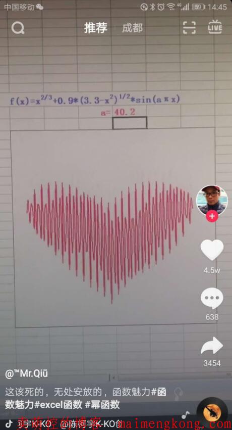 视频中利用Excel制作出一个漂亮,并通过动态赋值,实现心形变化的函数图成品打包给大家下载,可以用来向女朋友表白抖音很火的Excel 心形图像大小:1MB | 来源:百度网盘已经过安全软件检测无毒,请您放心下载。阅读全文>>... 阅 读 全 部 >