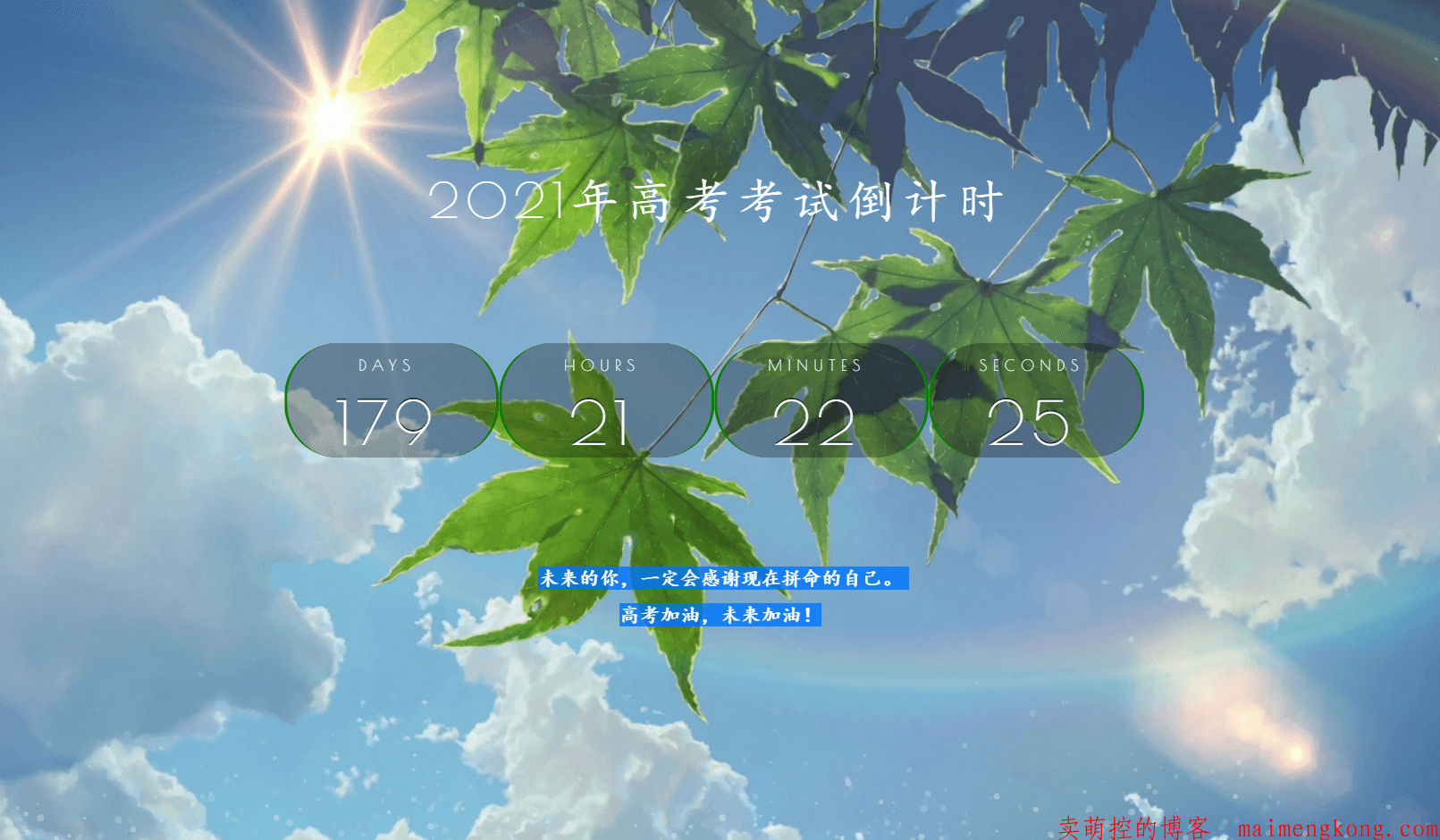 源码介绍 今天又给大家分享一款高考倒计时源码,在别的网站上面扒取的,感觉挺漂亮的,需要的可以自行下载修改使用! 源码截图2021年好看高考倒计时源码大小:10MB | 来源:网盘已经过安全软件检测无毒,请您放心下载。阅读全文>>... 阅 读 全 部 >