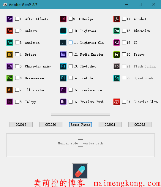 软件介绍 Adobe GenP,适用于Windows平台上的Adobe产品通用激活工具,支持Adobe 2019/2020所有产品。Adobe GenP,适用于Windows平台上的Adobe产品通用激活工具,支持Adobe 2019/2020所有产品。如果你喜欢安装官方版的话,可以试试用这个软件来和谐。 软件截图支持说明 2021.05.16 Adobe Zii 6... 阅 读 全 部 >