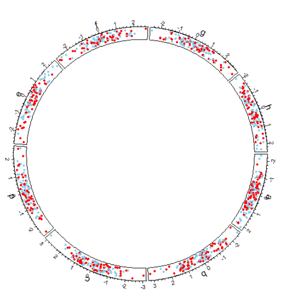一个圆形布局包含扇形(sector)和轨道(track)两个部分.扇形和轨道交叉的地方称之为cell.circlize使用的是R的base图层写的,因此和R自带的画图系统一样,包含high-level函数和低级绘图函数.高级绘图函数可以直接绘图,而低级绘图则只能在创建track之后,才能在上面绘图.circlize中的low level function包括以下几种,每一个其实都在R中存在对应的函...