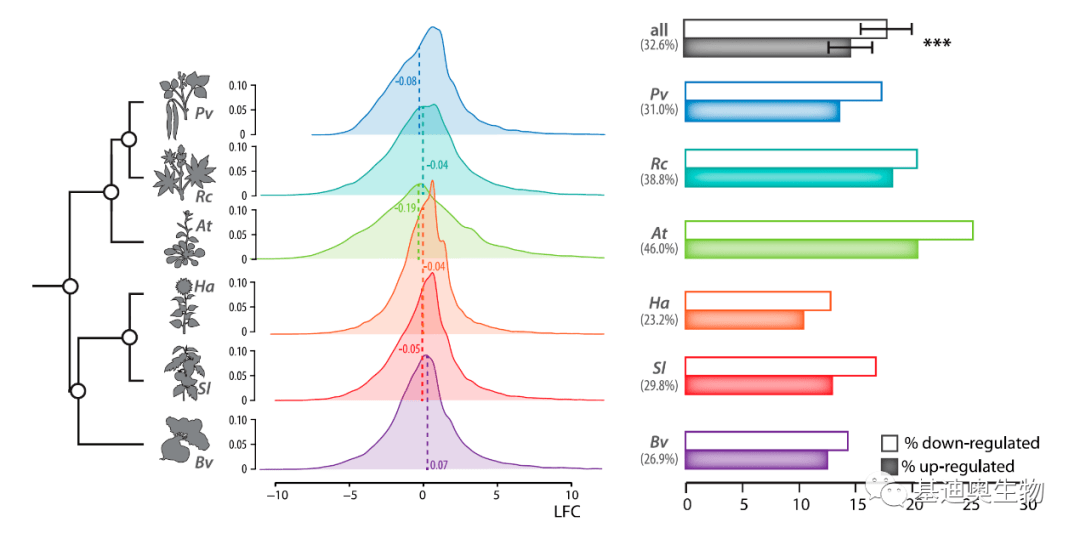 最近,在文献中看到这样一个令人惊艳不已的组合图,如下。很明显,这个图至少是由8个小图表组合而成的,通过坐标轴粗细和图表间隔的不一致可以看出来。可见,熟练使用Ai(Adobe illustrator)也是成为科研巨佬的必备技能。(The Plant Cell, 2020)除去两侧的聚类树和条形图,组合图的中间部分其实是一种比较新颖的山峦图,也称作山脊线图(Ridgeline plots),可以用作图...