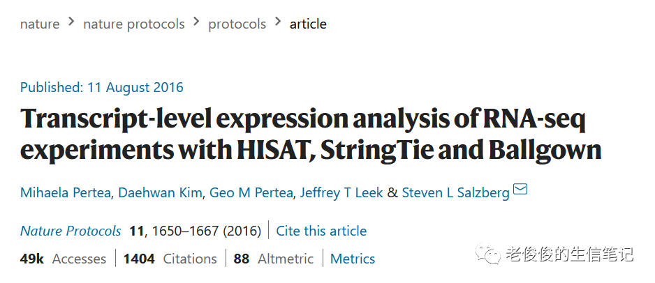 RNA-seq 即转录组测序技术,就是用高通量测序技术进行测序分析,反映出 mRNA,smallRNA,noncodingRNA 等或者其中一些的表达水平,寻找表达差异的基因预测或验证相关的分子机制及功能。2016 年发表在 nature protocols 上一篇关于转录本精确定量[1]的文章:文章中以 HISAT + Stringtie + Ballgrown 的...阅读全文>>...