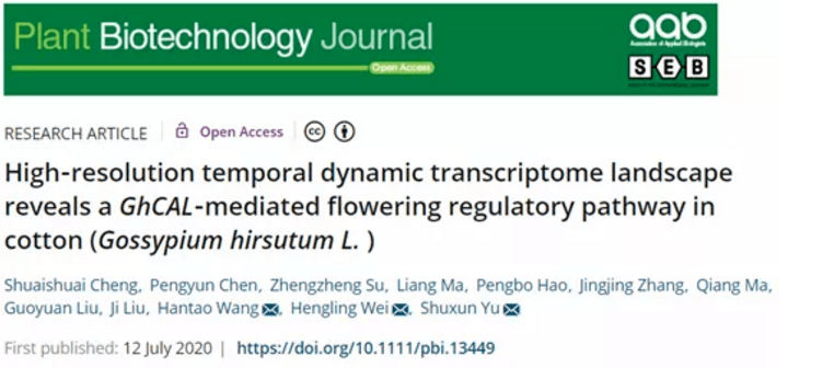 发表期刊:Plant Biotechnology Journal发表时间:2020年7月12 影响因子:8.1研究内容:棉花花芽分化研究对象:两个早熟品种,两个晚熟品种;每个品种6个时期研究方法:转录组测序研究题目:高分辨率时空动态转录组揭示陆地棉中GhCAL介导的开花调控途径前言陆地棉( Gossypium hirsutum L.) 是世界上最重要的纤维作物。在我国黄河流域和长江流域棉区,实现早...