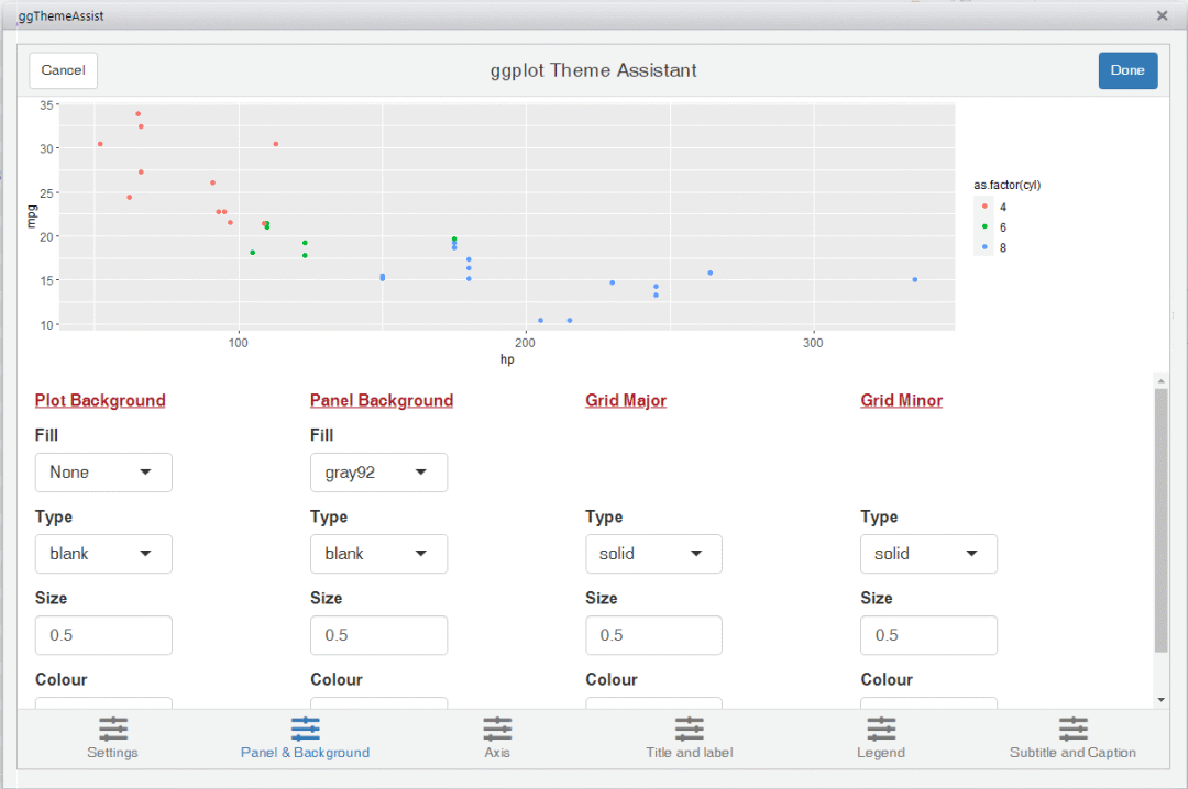 ggThemeAssist:鼠标调整主题,并返回代码R语言中的ggplot2是最美的绘图包之一。但调整主题的细节,需要写大量代码,而且反复修改、预览,费时费力。当然你可以用Adobe Illustrator等工具进行后期编辑,但要是图重画,所有后期编辑的工作又要重来,无法实现可重复分析,每个修改都很崩溃。有没有更方便的方式调整主题细节呢?ggTheme...阅读全文>>...