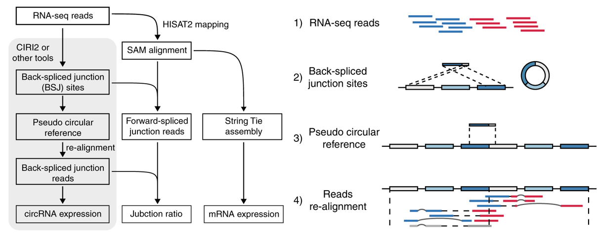 1. CircRNA背景及分析流程简介1.1. 背景简介环形RNA是一类在真核生物中广泛存在的具有特殊环状结构的非编码RNA分子。已有文献表明,在生物体内,环形RNA有着miRNA海绵、RBP海绵以及翻译短肽等多项功能,在许多生物学过程中发挥着重要作用。目前研究表明,大部分环形RNA来源于蛋白编码基因的外显子区域。在pre-mRNA剪接的过程中,除典型的内含子剪接事件外,还...阅读全文>&... 阅 读 全 部 >