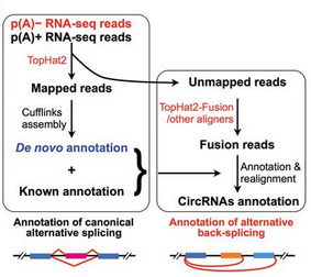 摘自生信草堂今天的文章中我给大家介绍环状RNA预测的另一款重要的软件——CIRCexplorer2. 该软件是由中国科学院上海生命科学研究院生物化学与细胞生物学研究所陈玲玲研究组和计算生物学研究所杨力研究组共同开发的,他们团队已经在《Cell》, 《Mol Cell》和《Genome Res》等国际顶尖杂志发表多篇环状RNA研究文章。CIRCexplorer2继承...阅读全文>>...