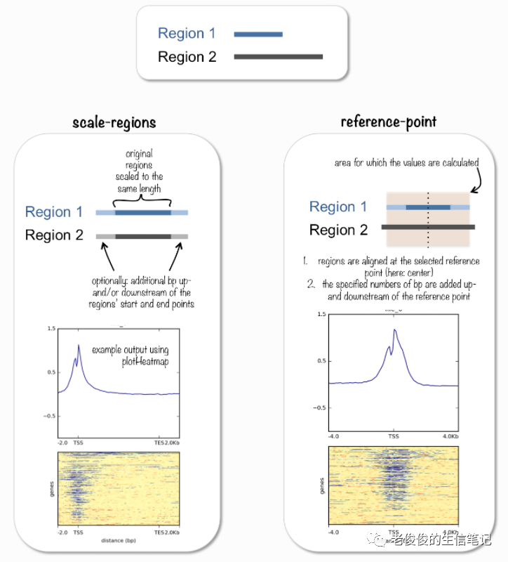 感谢老俊俊的大力支持。我们会每日跟新,欢迎您关注老俊俊的生信笔记。神器之 computeMatrix + 绘图介绍上期 ” Deeptools 神器之 bamCoverage” 讲到如何将 bam 文件转化为 bigwig 文件可视化每个基因的 reads 覆盖情况,此外如果想对某些特定类型的区域例如 TSS(transcription start site)、TES(transcrip...阅读...