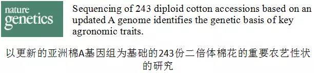 2018年5月8日,中国农业科学院棉花研究所所长李付广研究员、武汉大学朱玉贤院士及中棉所杜雄明研究员与北京百迈客生物科技有限公司合作的亚洲棉基因组文章发表在NatureGenetics上,该研究是以全新的亚洲棉基因组为基础,进行遗传进化和全基因组关联分析,对亚洲棉的品质、产量和抗病性等重要性状进行了研究。以下是对该文章的详细解读。1.摘要亚洲棉(Gossypium arboreum)和草棉(......