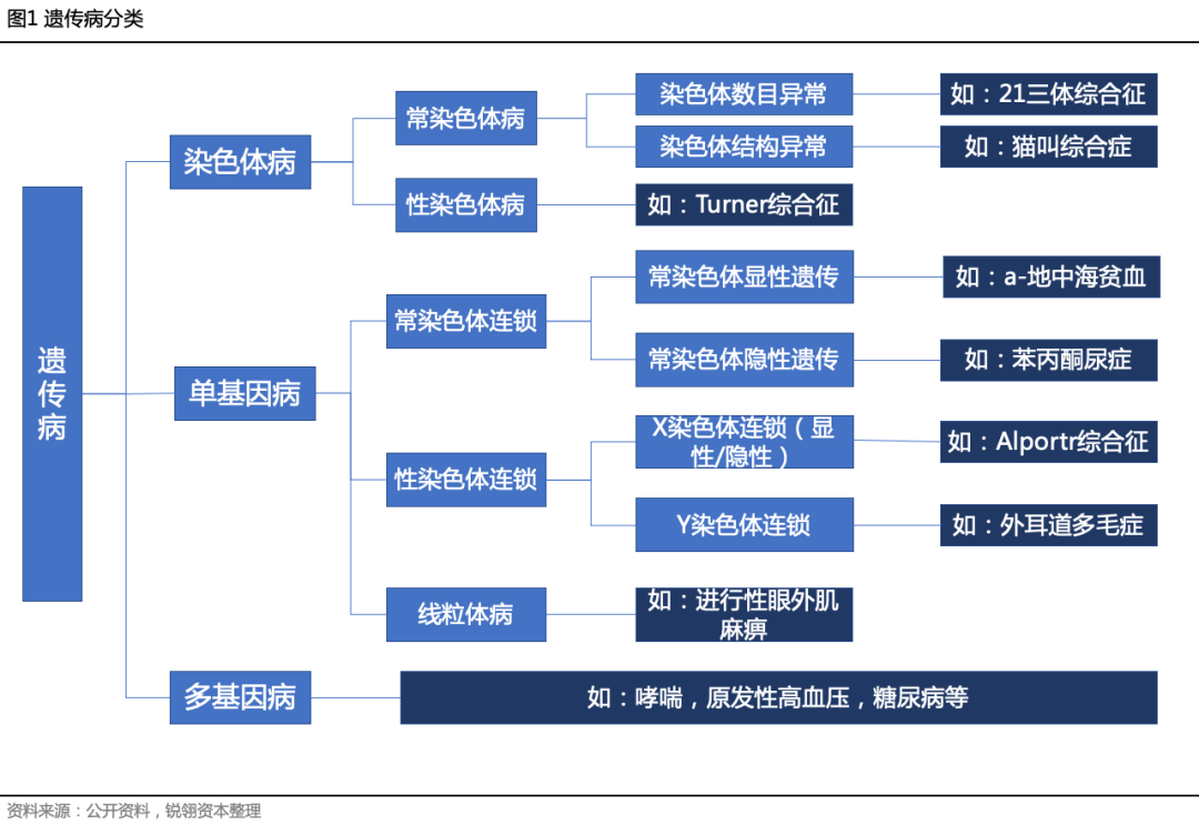 来源:锐翎资本导读 在目前的临床基因检测市场当中,NIPT和肿瘤伴随诊断占据了大部分市场份额,除了继续在现有产品上提高份额外,开启新的产品增长点也将是重中之重。遗传病基因检测作为目前基因测序行业一项较为成熟的技术,很有可能在下一阶段获得政策支持,成为基因测序行业新的热点。笔者将对目前遗传病诊疗现状、市场容量以及行业内企业的市场竞争要素做简要分析。目录01遗传病简介以及诊疗现状02常用遗传病检测技术...