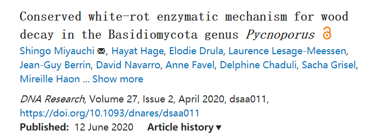 研究背景担子菌在木材分解方面具有重要的意义,大部分能够降解木材的物种都属于担子菌。白腐菌是属于担子菌亚门的真菌 ,因腐朽木材呈白色而得名。白腐菌是生物界中一类奇特的丝状真菌,是能够降解木材主要成分(纤维素、木质素和半纤维素)的微生物之一 ,它们对各种异生物质具有独特降解能力和降解机制。白腐菌对木质纤维素的降解很大程度上是一个复杂的酶学过程,需要一系列的水解和氧化酶的协同作用来完成,而且不同的白腐菌...
