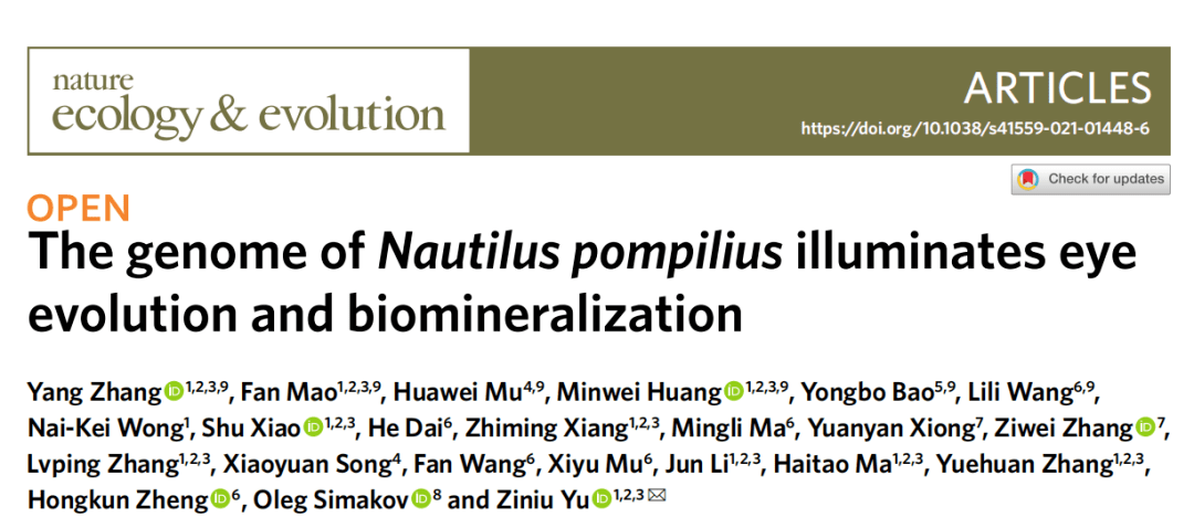 近日,中国科学院南海海洋研究所喻子牛研究员团队鹦鹉螺基因组研究成果以“The genome ofNautilus pompiliusilluminates eye evolution and biomineralization”为题,在国际著名期刊Nature Ecology & Evolution(IF:12.544)上在线发表,百迈客生物科技作为共同一作共同参与研究。文中通过三代Pac...