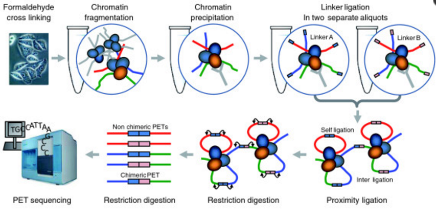 首先,让我们先回顾一下分子生物学的基本知识。人类细胞中的DNA序列长度约1828.8毫米,而细胞核的直径只有5微米,那么,如何将这些DNA装入核中是细胞面临的一个巨大挑战。好在DNA并不是裸露地存在于细胞核中,它们由核小体折叠缠绕,形成可以调节的结构。这就意味着DNA序列不能简单地理解为按照一维线性排列,而应该是具有三维折叠和环套状态的结构。我们知道DNA重测序,转录组测序,甲基化...阅读全文&...