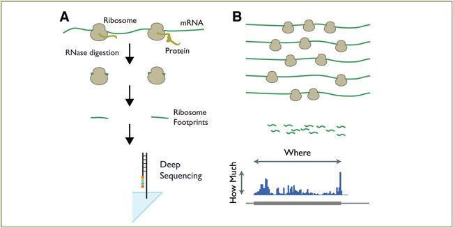 这段时间许多童鞋在后台问,TRIzol裂解的细胞能做翻译组测序(Ribo-seq)吗?今天统一回复下。图 (A)核糖体保护mRNA足迹不被消化;(B)将足迹与基因组比对,可以显示出哪些mRNA正在翻译以及翻译水平高低上图是Ribo-seq简化的实验流程图。Ribo-seq实验是这样做的:快速收获细胞并裂解,保持体内核糖体结合mRNA的位置。然后用RNase I对细胞裂解液进行消化处理(Nucl.....