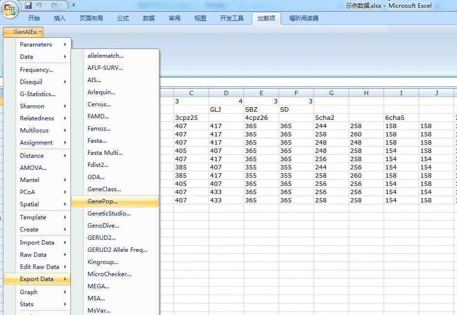 GENEPOP是一个非常实用的群体遗传学分析软件 ,适用于对大量的群体遗传学数据进行分析。下面我们就来介绍一下它的使用方法。操作步骤先用GenAlEx把数据转为Genepop格式格式转好了放到程序目录下,删除其他之前运行剩下的结果文件,仅保留三个文件运行软件,输入输入文件的名称确认信息,回车可以进行很多项分析一共有8个选项:1.Hardy-Weinberg test:进行种群内各位点的平衡状态及种...