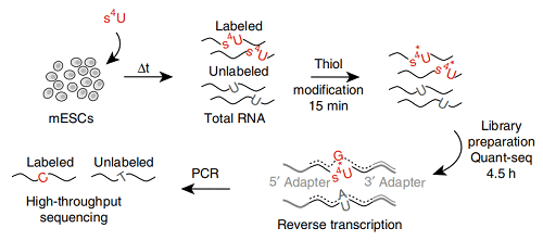 SLAM-seq(thiol(SH)-linked Alkylation for the Metabolic sequencing of RNA)可以理解为“S4U烷基化RNA代谢测序技术”,通过核苷类似物(S4U) 标记和高通量测序方法,实现对新生RNA与原有RNA的定量和识别。SLAM-seq技术有助于检测RNA的半衰期与稳定性变化,鉴定RNA修饰所介导的靶基因变化,以及揭示mRN...阅读全...