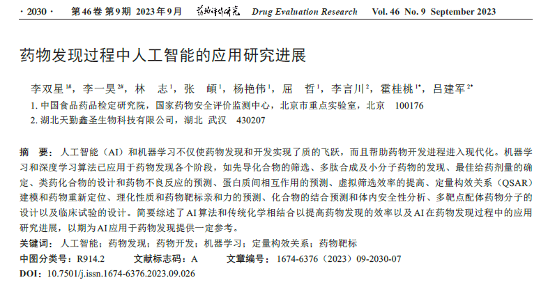 在过去的20年中,生物学家和化学家一直致力于开发一种高效和先进的药物发现和评价系统[1],不仅可以高效率地发现靶向治疗药物,而且可以降低潜在药物不良反应的发生风险。为了减少新药开发的时间并降低费用,科研人员将目光转向了基于计算机和大数据的方法,如虚拟筛选(VS)和分子对接,但这些方法具有准确性差和效率低等问题[2]。人工智能(AI),包括深度学习(DL)和机器学习(ML)算法,有望可以克服在药物设...