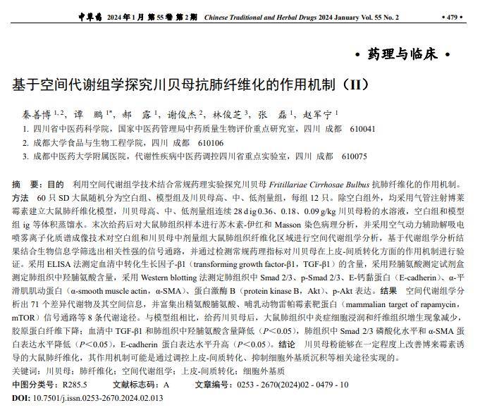 基于空间代谢组学探究川贝母抗肺纤维化的作用机制(II)