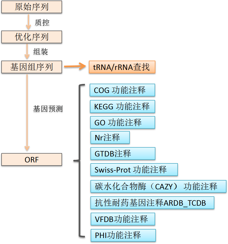 一、 介绍细菌基因组研究,是通过基因组测序和组装,获得细菌全基因组序列,并对基因组开展结构预测,功能注释、比较基因组学及泛基因组研究。依据研究精细程度不同,分为框架图(也称为草图)、完成图(0gap),下面我们主要介绍框架图的分析内容。二、 分析流程基本流程为,建库测序,序列优化,基因组组装,基因及结构预测,功能注释,画图展示。三、 分析步骤与结果展示1、测序序列...阅读全文>>...