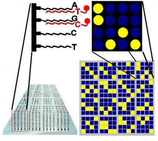 基因芯片(Gene chip)(又称DNA芯片、生物芯片)最初是80年代中期提出的。它是由大量DNA或寡核苷酸探针密集排列所形成的探针阵列,其工作的基本原理是通过碱基互补配对检测生物信息。即通过与一组已知序列的核酸探针杂交进行核酸序列测定的方法,在一块基片表面固定了序列已知的靶核苷酸的探针。当溶液中带有荧光标记的核酸序列TATGCAATCTAG,与基因芯片上对应位置的核酸探针产生互补匹配...阅读...