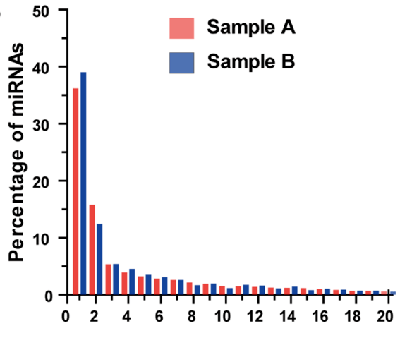 小RNA中的丰度分布十分不均,少数种类小RNA的丰度占全部的比例较高,研究重点也都放在丰度较高的小RNA上,小RNA长度分布图可以有效筛选丰度较高的小RNA,我们以文献“Characterization of mouse serum exosomal small RNA content: The origins and their roles in modulating inflammato...... 阅 读 全 部 >