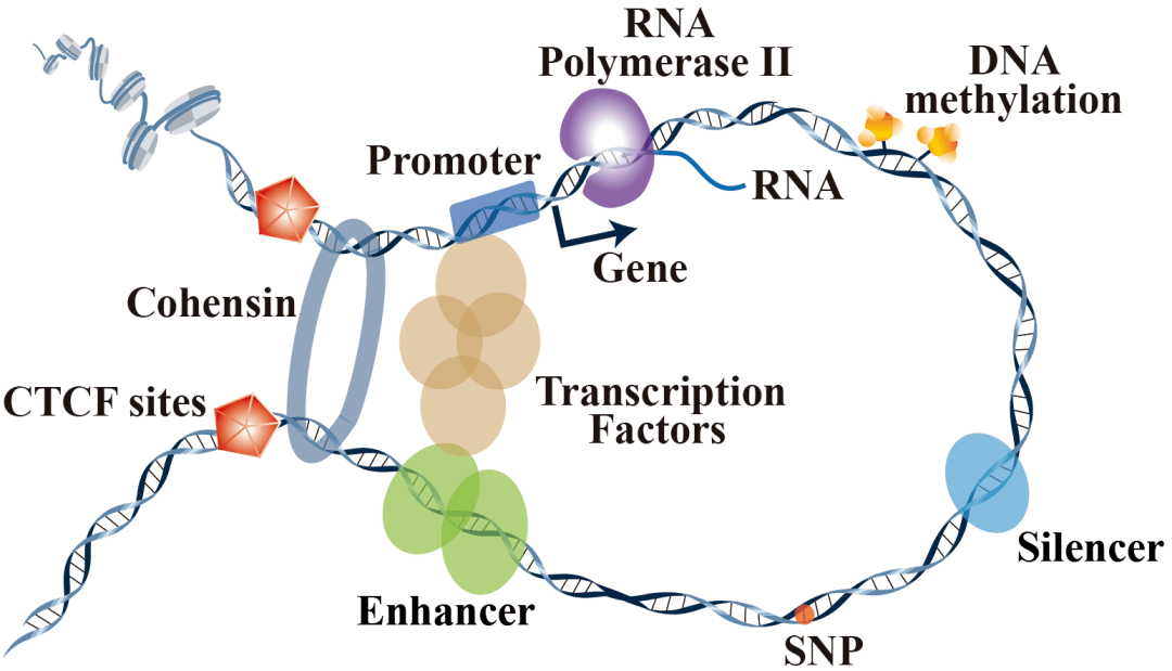 染色质环(或染色质相互作用)是染色质结构的重要组成元素(图1)。染色质环的破坏与癌症、多指畸形等多种疾病有关。目前,ChIA-PET、HiChIP和PLAC-Seq等技术可用于检测特异性蛋白质介导的高分辨率染色质环。近年随着3D基因组研究的快速进展,ChIA-PET、HiChIP和PLAC-Seq的数据集不断积累,亟需对这些数据集进行有效的收集和处理。图1. 染色质环(Chromatin loop...