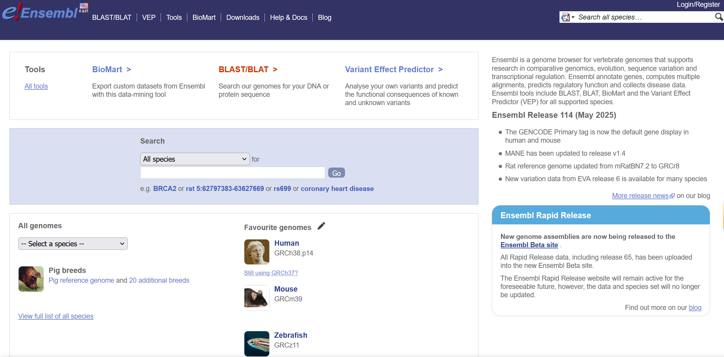 在现代生命科学研究中,基因组数据 已成为不可或缺的资源。无论是基础研究还是转化医学,如何快速、准确地获取并解析基因组信息,直接决定着科研效率。在众多基因组数据库中,Ensembl 无疑是全球最常用、功能最全面的基因组浏览与注释平台之一。打开浏览器,输入 https://www.ensembl.orgEnsembl数据库1. 什么是 Ensembl?Ensembl 是由...阅读全文>>...