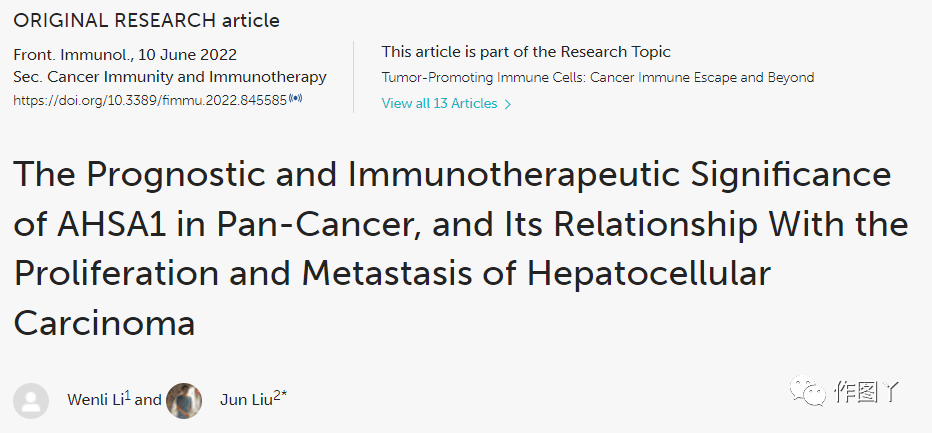 导语AHSA1是Hsp90的ATP酶的主要激活剂,然而,AHSA1在肿瘤细胞中的作用仍然未知。背景介绍今天小编为大家带来一篇单基因泛癌生信分析+简单实验验证就发表了8分+期刊的案例。文章于今年六月刚刚发表在Front. Immunol 上, 题目为The Prognostic and Immunotherapeutic Significance of AHSA1 in Pan-Cancer, ..... 阅 读 全 部 >