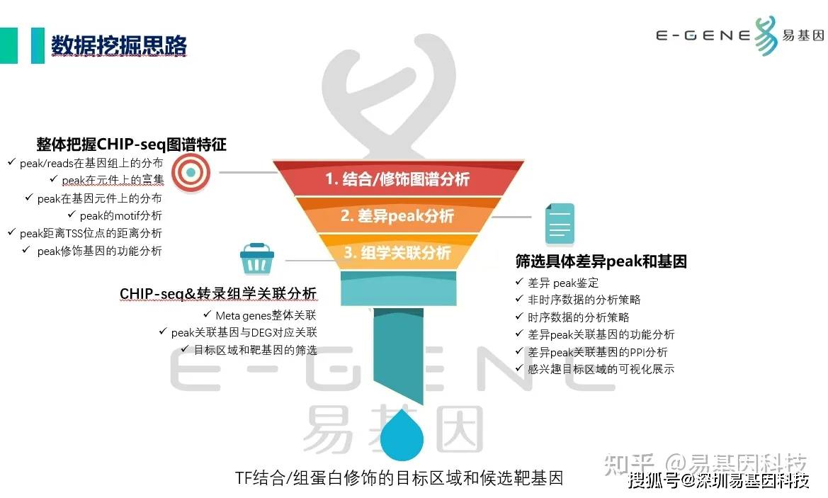 大家好,这里是专注表观组学十余年,领跑多组学科研服务的易基因。CHIP-seq研究的数据挖掘思路主要分为3步:整体把握CHIP-seq图谱特征:peak/reads在基因组上的分布、peak在元件上的富集、peak在基因元件上的分布、peak的motif分析、peak距离TSS位点的距离分析、peak修饰基因的功能分析筛选具体差异peak和基因:差异peak鉴定、非时序数据的...阅读全文>...