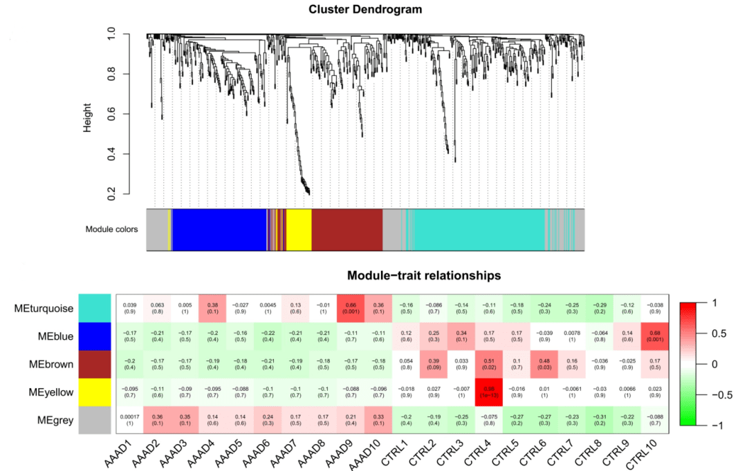 WGCNA分析,是加权基因共表达网络分析。在文献中,我们经常能够看到这样的WGCNA分析图。例如文献“Expression profiles of circRNAs and the potential diagnostic value of serum circMARK3 in human acute Stanford type A aortic dissection”中的Figur...阅读全文...