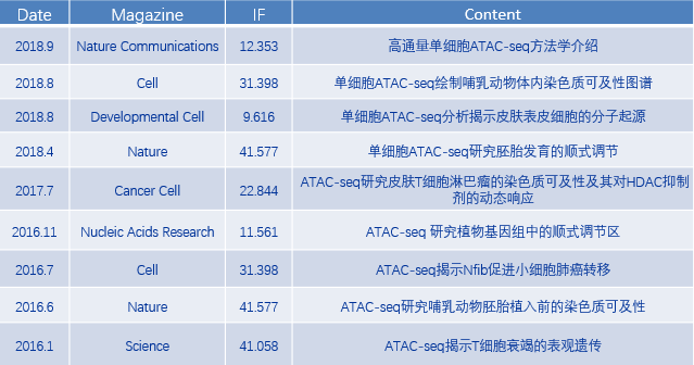 近年来,ATAC-seq技术成为研究基因表观组学的新利器,在Cell、Nature等顶级期刊发表了多篇高分文章。这些研究主要通过ATAC-seq来研究表观遗传学调控,包括信号通路、细胞发育、疾病发生等,同时结合motif分析来识别哪些转录因子参与基因表达调控。表1 ATAC-seq发表的部分高分文章什么是ATAC-seq?染色质开放区:真核生物染色体是由DNA分子包裹组蛋白形成的核小体结构通过一系...