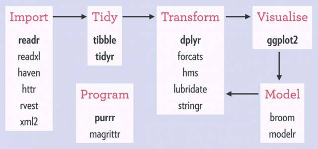 tidyverse包是一个R包集合,在数据导入,数据整理和变换,数据可视化等领域提供了数据科学的解决方案。 tidyverse包可以让数据科学家,统计学家和数据分析师等数据工作者更有效率地从事数据的研究和实践。 tidyverse包是RStudio的首席科学家Hadley Wickham创建的。 tidyverse包遵循数据科学工作流程,为使用者提供一个有效的,可以不断迭代和完善的工作方法和实践步...