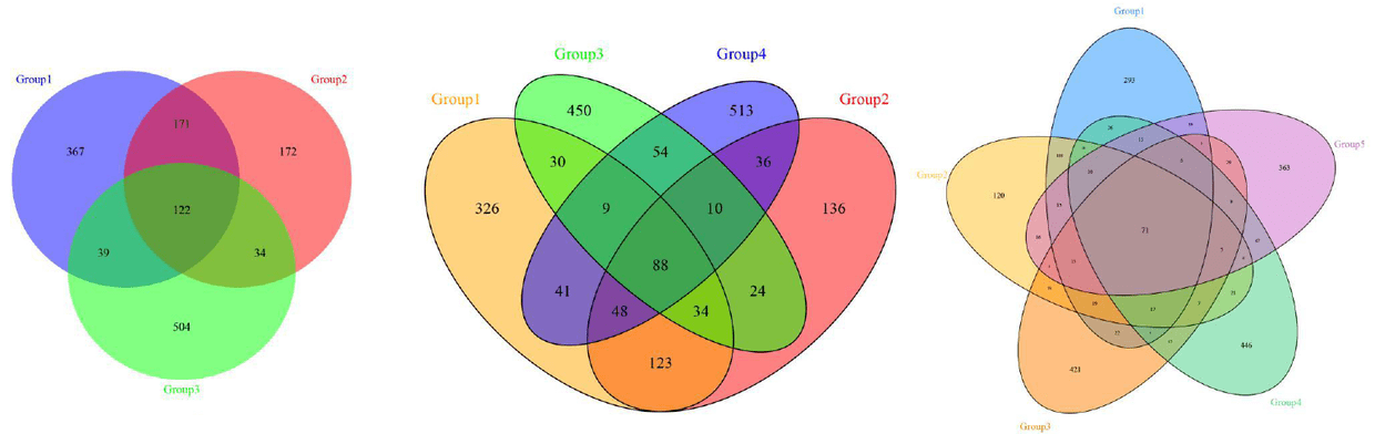 Venn图经常用于表现组间重叠元素的数量信息。但是随着分组数量的增多,Venn图的结构会越渐复杂,如下所示,当分组数量为5组时,已经不容易从中识别交集概况了。因此,这也是为什么很少见到5组以上的Venn图的原因。3组、4组、5组的韦恩图样式,分组越多越复杂可是有些时候,确实有待于展现大于5组的集合。如果不使用Venn图,应该怎样做呢?此时不妨试下UpSet图,它是在较多分组条件时取代Ve...阅读... 阅 读 全 部 >